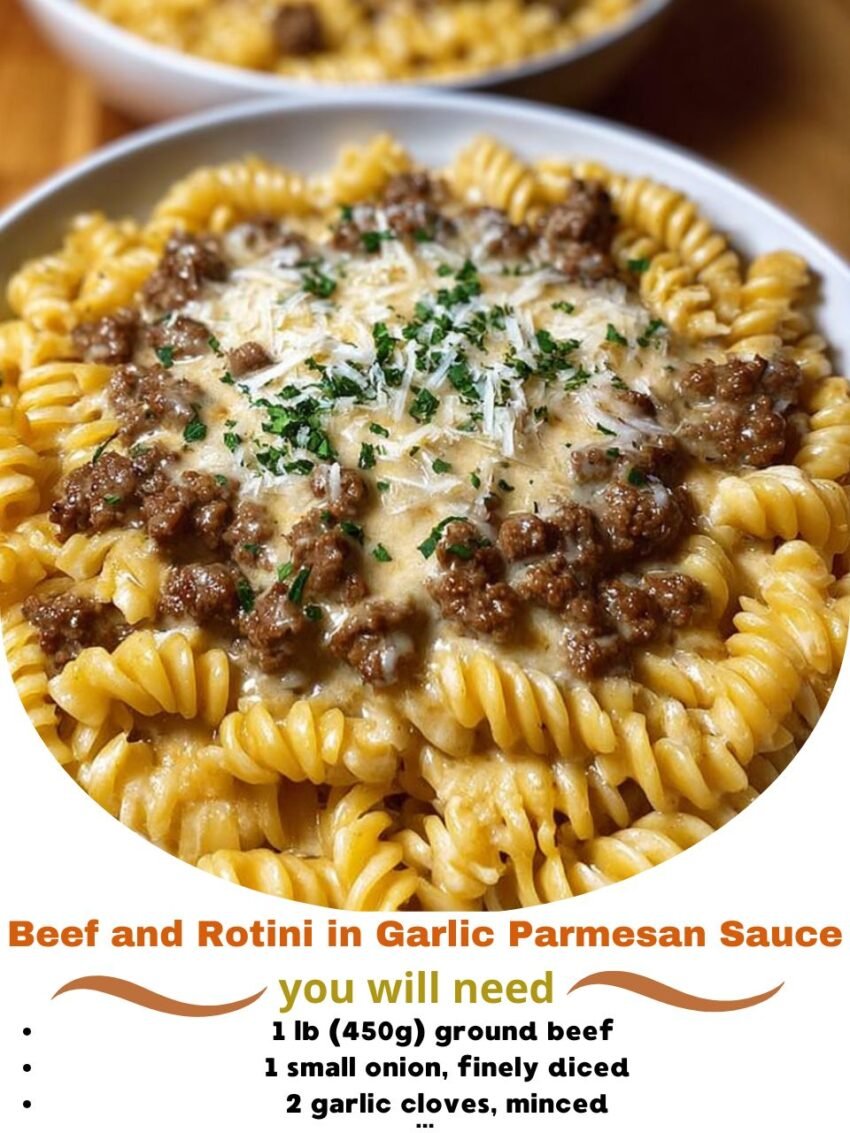 Absolutely! Here’s a detailed, step-by-step recipe for Beef and Rotini in Garlic Parmesan Sauce. This is a creamy, cheesy pasta dish with tender beef and lots of flavor. I’ll break it down carefully so it’s easy to follow.
